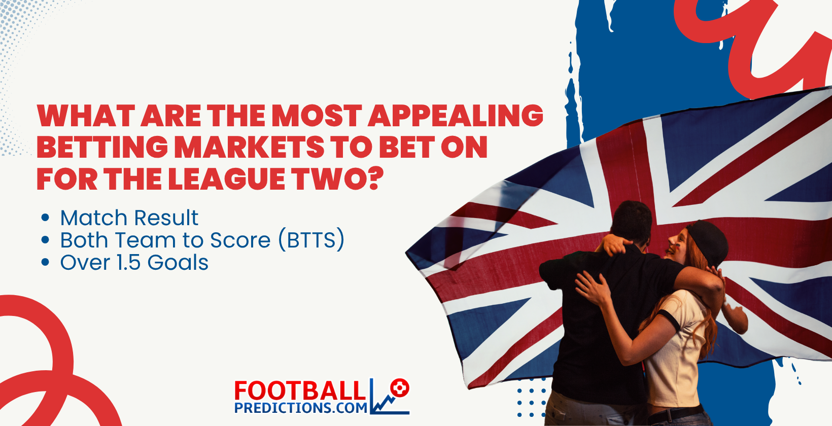 The most appealing betting markets for League Two are Match Result, Both Teams to Score (BTTS), and Over 1.5 Goals. These three markets stand out because they combine consistency across seasons with the unpredictability that defines England’s fourth tier, giving bettors stronger statistical grounding.