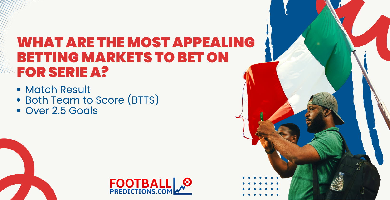 - Match Result (Home Win, Draw, Away Win). The Match Result market, or 1X2, is the foundation of Serie A betting. Over the last five seasons, home wins have been the most frequent outcome at 40–42%, with away wins at 29–35% and draws at 25–29%. These figures underline the continued importance of home advantage in Italy. For example, Roma’s fortress at the Stadio Olimpico remains difficult for visitors, while Bologna’s 2023/24 unbeaten home run highlighted how mid-table clubs tend to exploit familiar surroundings. On the other hand, away specialists like Inter Milan often buck the trend, consistently picking up three points on the road. This balance ensures Match Result remains a key market for punters in Serie A.